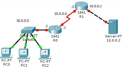 R1(config)#ip route 30.0.0.0 255.0.0.0 20.0.0.1