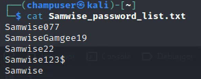 Deliverable 8. Armed with the contents of /etc/passwd, let’s see if we can build a list of likely passwords for the target account. You should end up with 28 passwords in your list. Provide a screenshot that shows how you generated the list as well as the list contents.