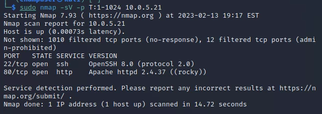 Deliverable 2. Using what you have during the reconnaissance modules, run a scan to determine any listening tcp services to include the service versions. Provide a screenshot of both your command and results.