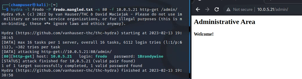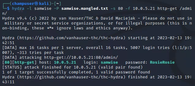 Deliverable 5. For at least 3 shire staff, bypass authentication on the protected directory using the tool of your choice. Provide screenshot(s) showing the tool execution and the guessed password. (Make sure you validate all of these work)