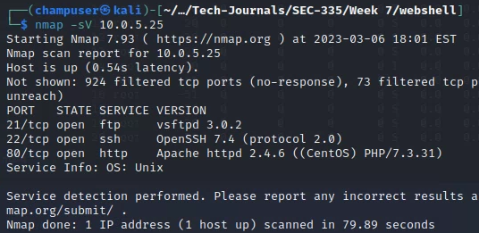 Deliverable 1. Provide screenshots of open ports, their services and versions.