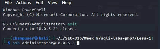 I cracked the hash for the admin user and then sshed into the machine using administrator as the user because it’s a windows machine. -