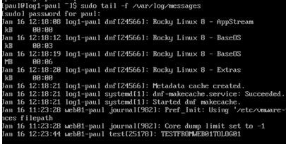 logger -t test TESTTOLOG- Now do step 5 of server and it should show a message like this: