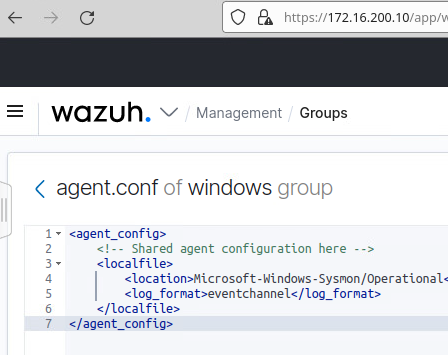 </localfile>If you don’t have a windows group can add the lines below to /var/ossec/etc/shared/default/agent.conf on the wazuh server.