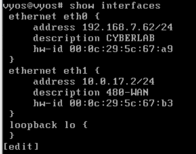 set interfaces ethernet eth1 address 10.0.17.2/24