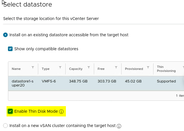 Leave all default but select “Enable Thin Disk Mode”