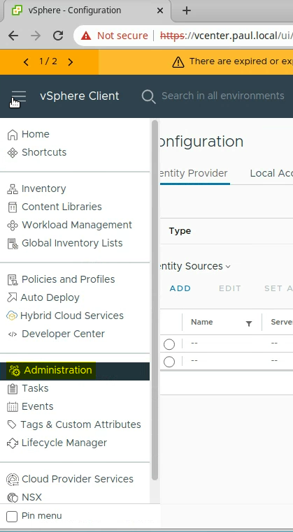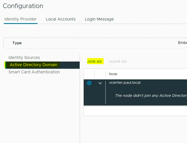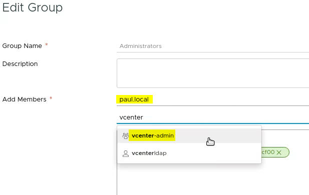 New-ADUser -Name "vcenterldap" -Accountpassword (Read-Host -AsSecureString "AccountPassword") -path "OU=ServiceAccounts,OU=AccountsOU=480,DC=paul,DC=local" -Enabled $trueMove -adm user through gui and make vcenter-admin group