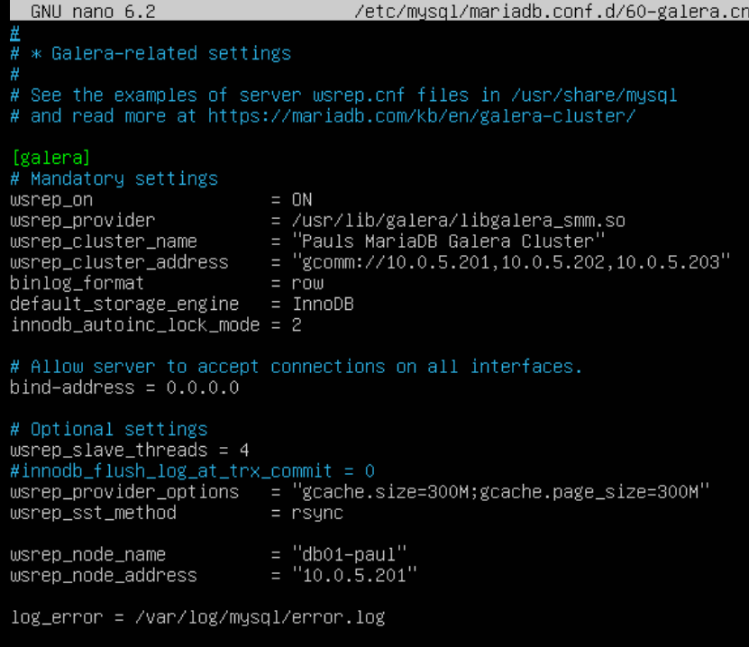 sudo nano /etc/mysql/mariadb.conf.d/60-galera.cnf