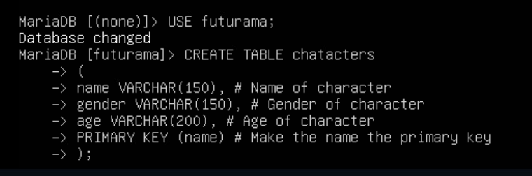 CREATE DATABASE futurama;