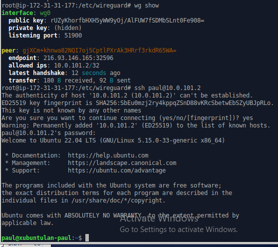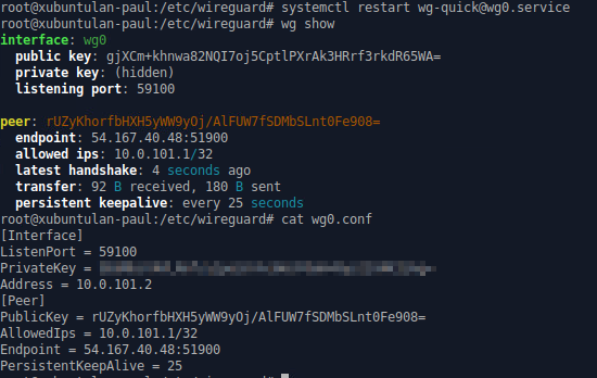 systemctl restart wg-quick@wg0.serviceShowing connectivity