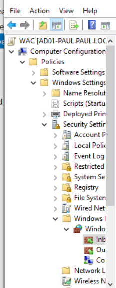 Finally add an inbound firewall rule: Computer Configuration > Policies > Windows Settings > Security Settings > Windows Defender Firewall with Advanced Security