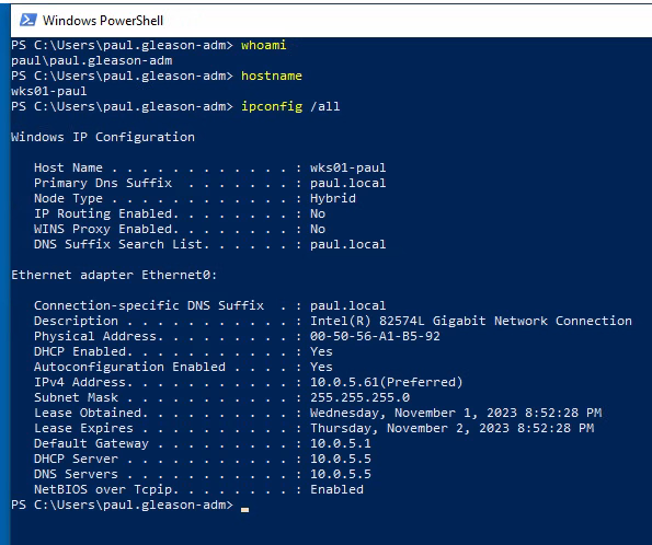Add-DhcpServerInDC -DnsName "ad01-paul.paul.local" -IpAddress 10.0.5.5WK01 on DHCP