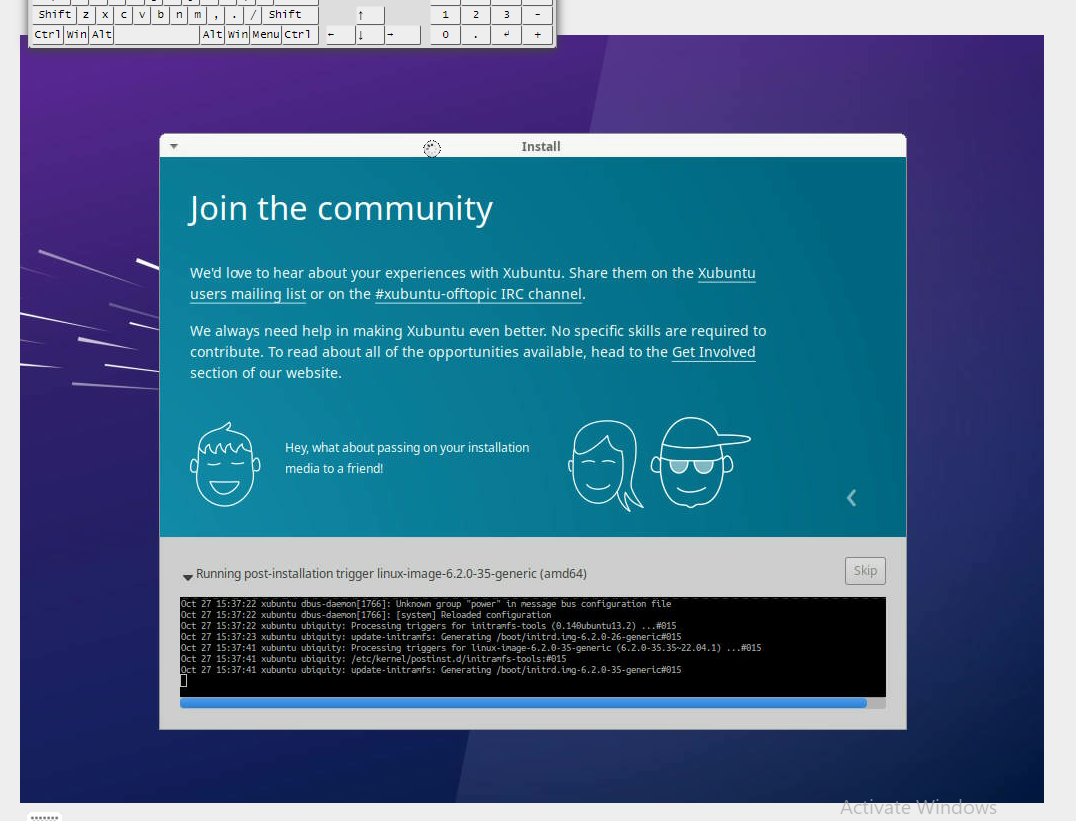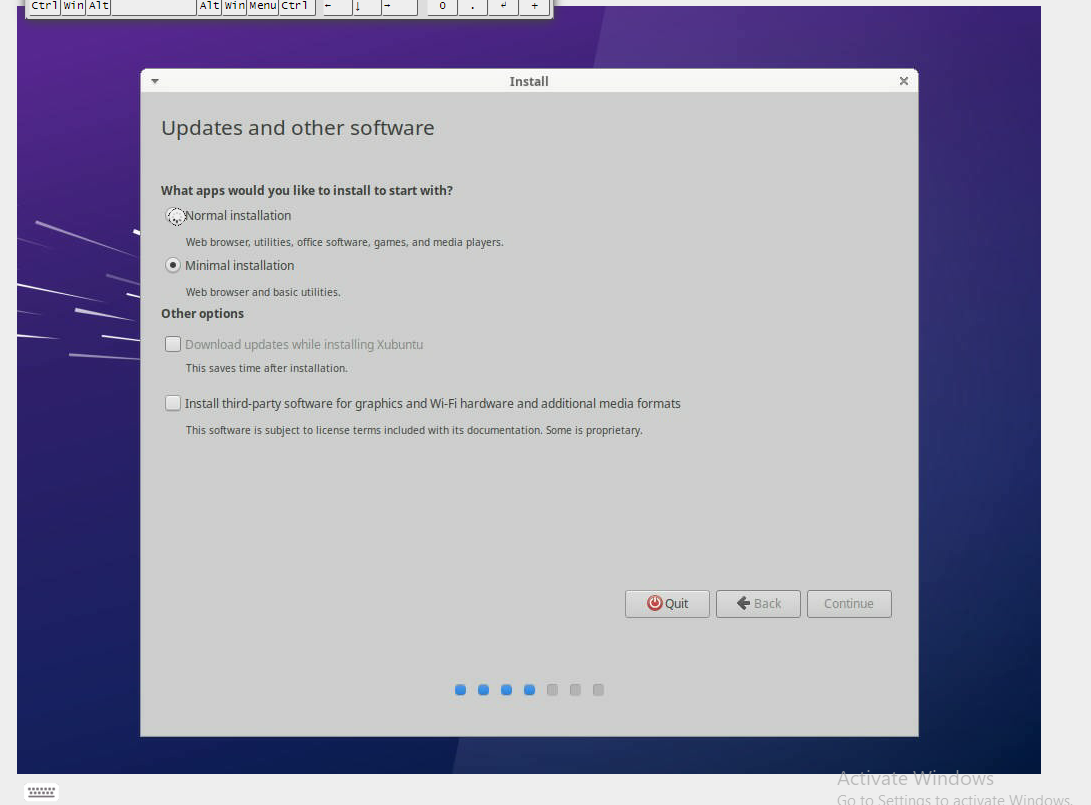 Then we installed Xubuntu (screenshots of the process like picking USB, non-default options selected, shown below):