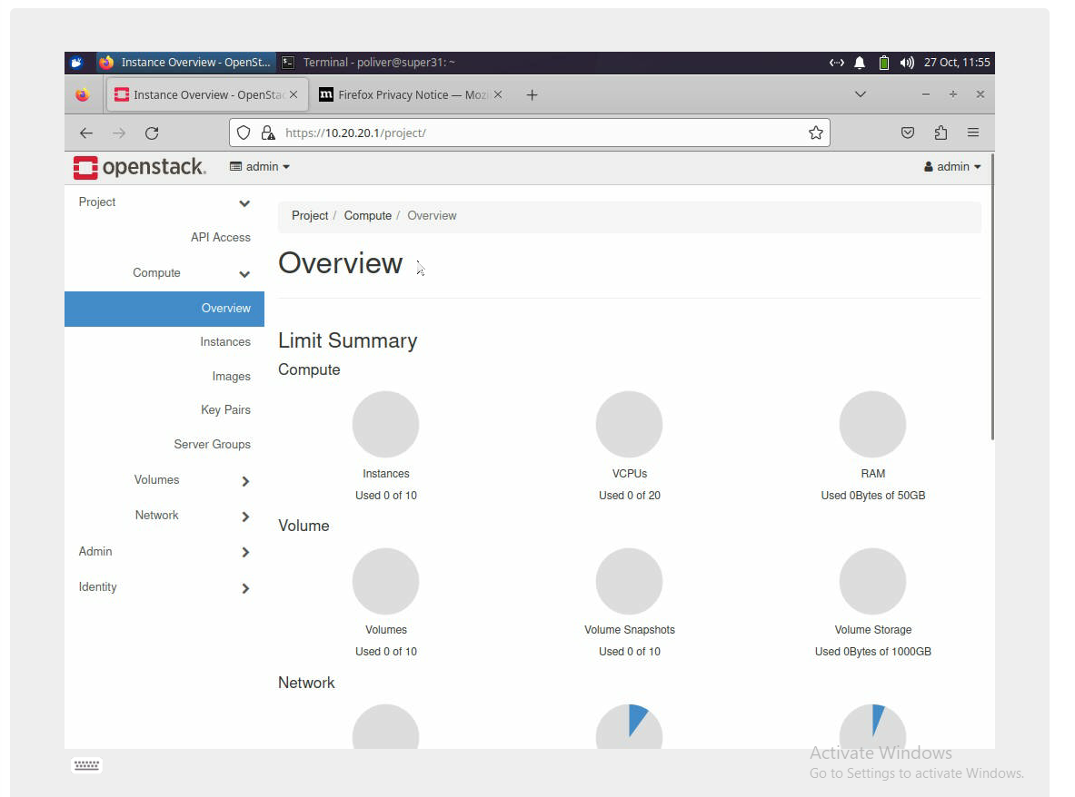 sudo snap get microstack config.credentials.keystone-passwordThen we went to ” https://10.20.20.1” and logged in: