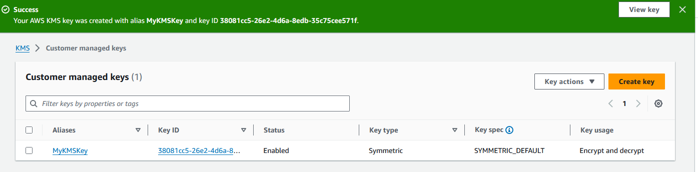 Task 1 Screenshot of the Key you created