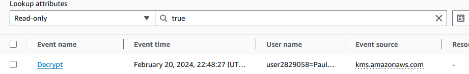 Task 5: Screenshot of Decrypt Event in Cloudtrail