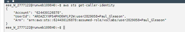 In the terminal type “aws sts get-caller-identity” (This is an optional step)