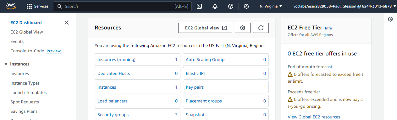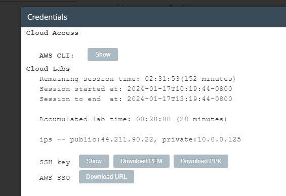 Create a new key pair: (But for this lab we’re using the default vockey)