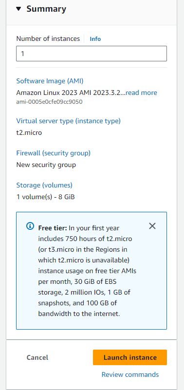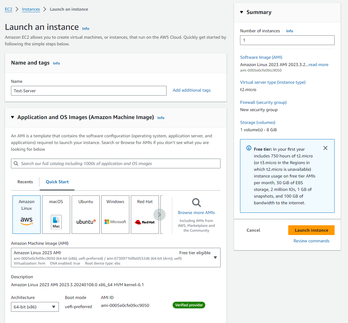 Now select “Launch Instance” in the top right. After that you will be brought to the launch instance page: