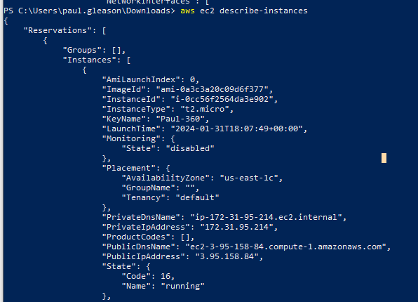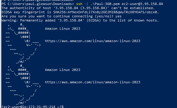ssh -i Paul-360.pem ec2-user@3.95.158.84