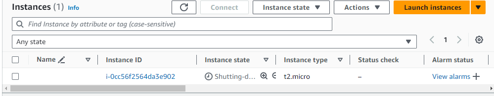 Submit - from the AWS Console - EC2 - Instances - Screenshot showing the terminated instance (you may need to refresh if it still shows running)