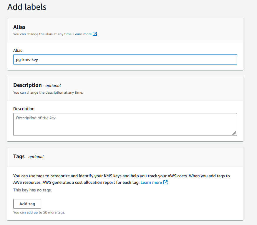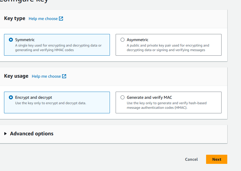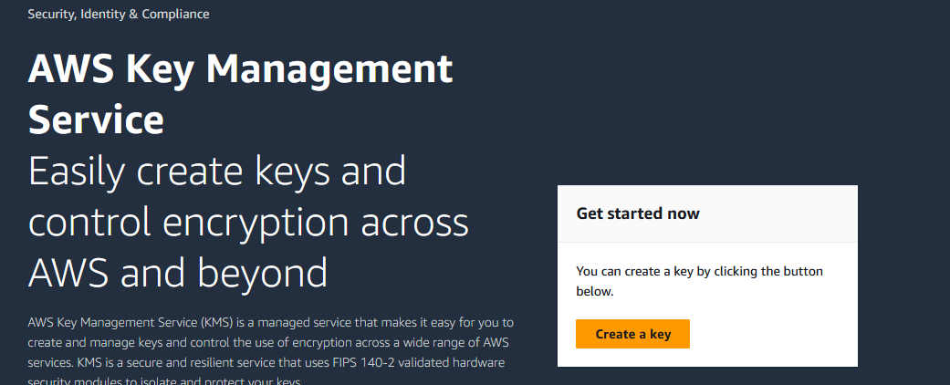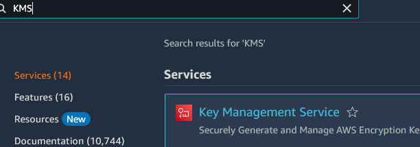 Create a Customer Managed Key in KMS: