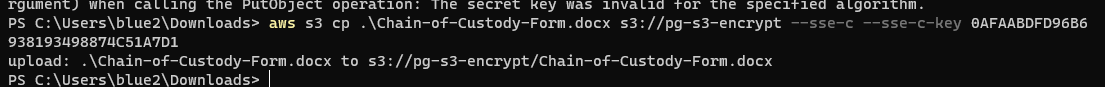 Screenshot of terminal output of successful CLI upload of file using your client key