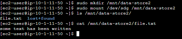 Task 4: Screenshot of cat command showing that you were able to create a file on the volume