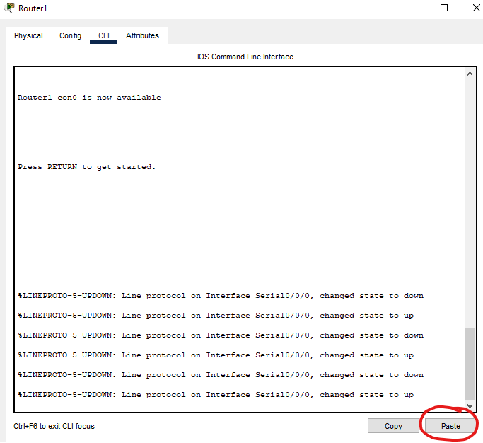 Now in packet tracer copy all of the output code and click paste. This will run all of the code line by line.
