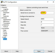 Now under Session Select the COM<Num> from earlier