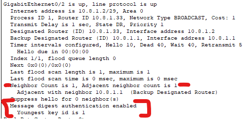 show ip ospf interface GigabitEthernet 0/1 | begin auth